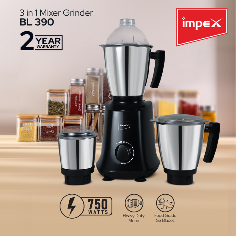The mixer grinder is available in black color, offering a sleek and modern aesthetic for your kitchen.
